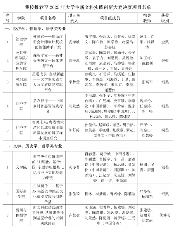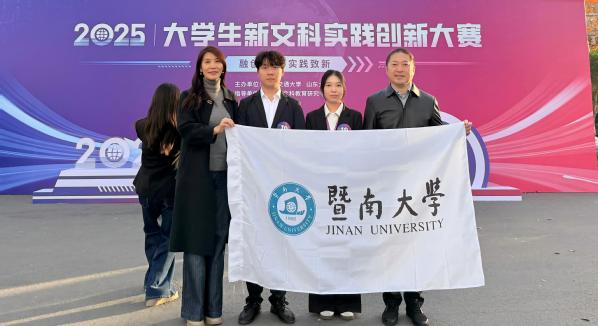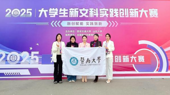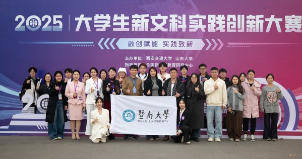 11月28日至30日,由全国新文科教育研究中心主办,山东大学、西安交通大学联合承办的2025年大学生新文科实践创新大赛决赛在西安交通大学兴庆校区举行。暨南大学共推荐8项作品至全国决赛,获得1项金奖、5项银奖、1项铜奖和1项优秀奖,学校荣获“优秀组织单位”。