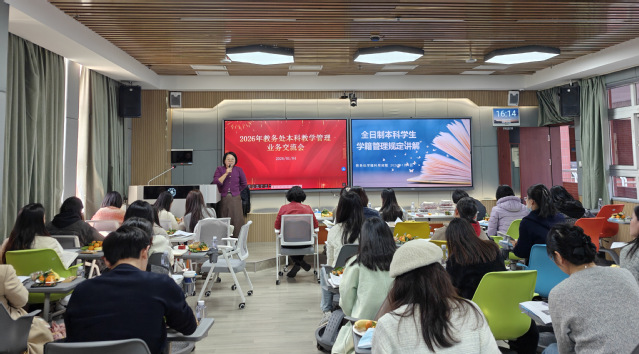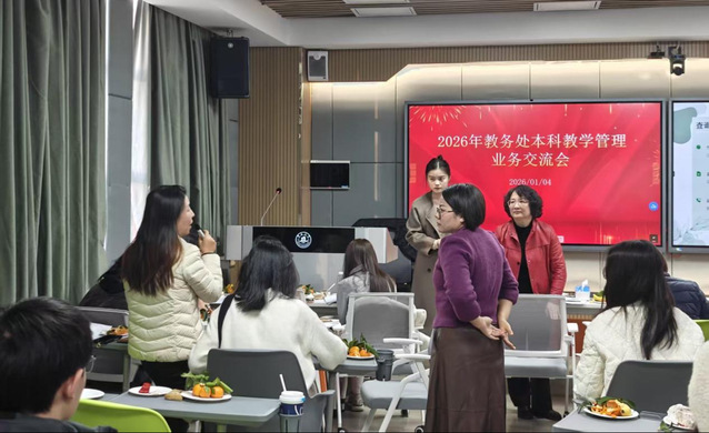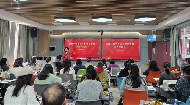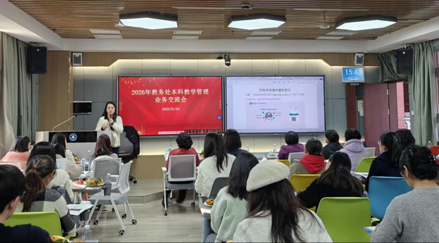 为进一步加强本科教学管理规范化建设,提升教学管理队伍业务能力与服务水平,2026年1月4日下午15:00,教务处在校本部教学大楼502课室组织召开了本科教学管理业务交流会。会议由教务处副处长易晖主持,教务处学籍科、教务科、番禺校区教学办公室以及各学院教务老师共计50余人参加了本次交流活动。
